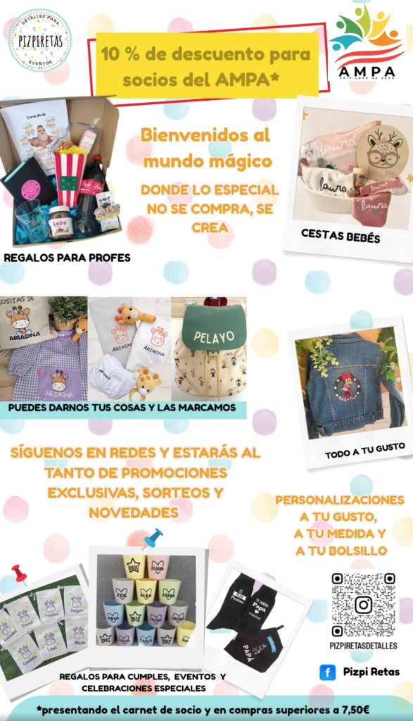 10% de descuento presentando el carnet de socio actual del AMPA en compras superiores a 7,50€